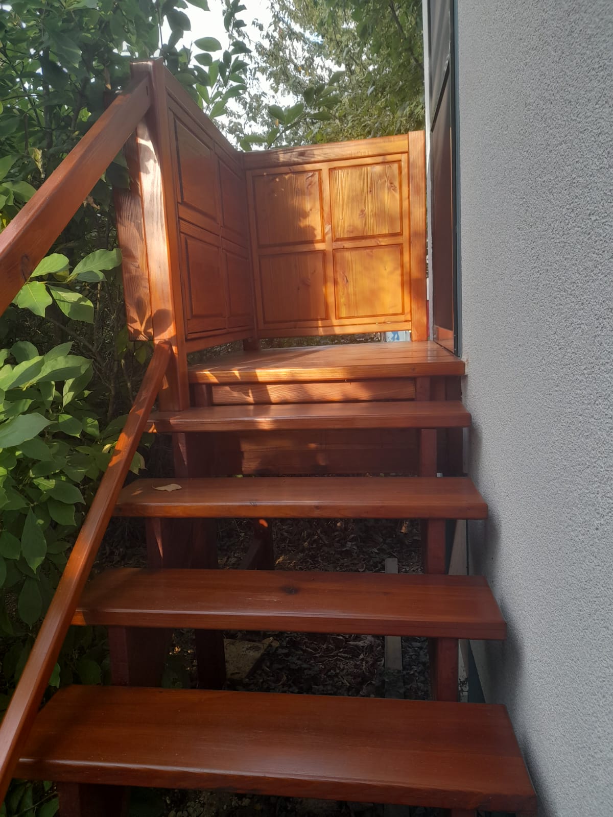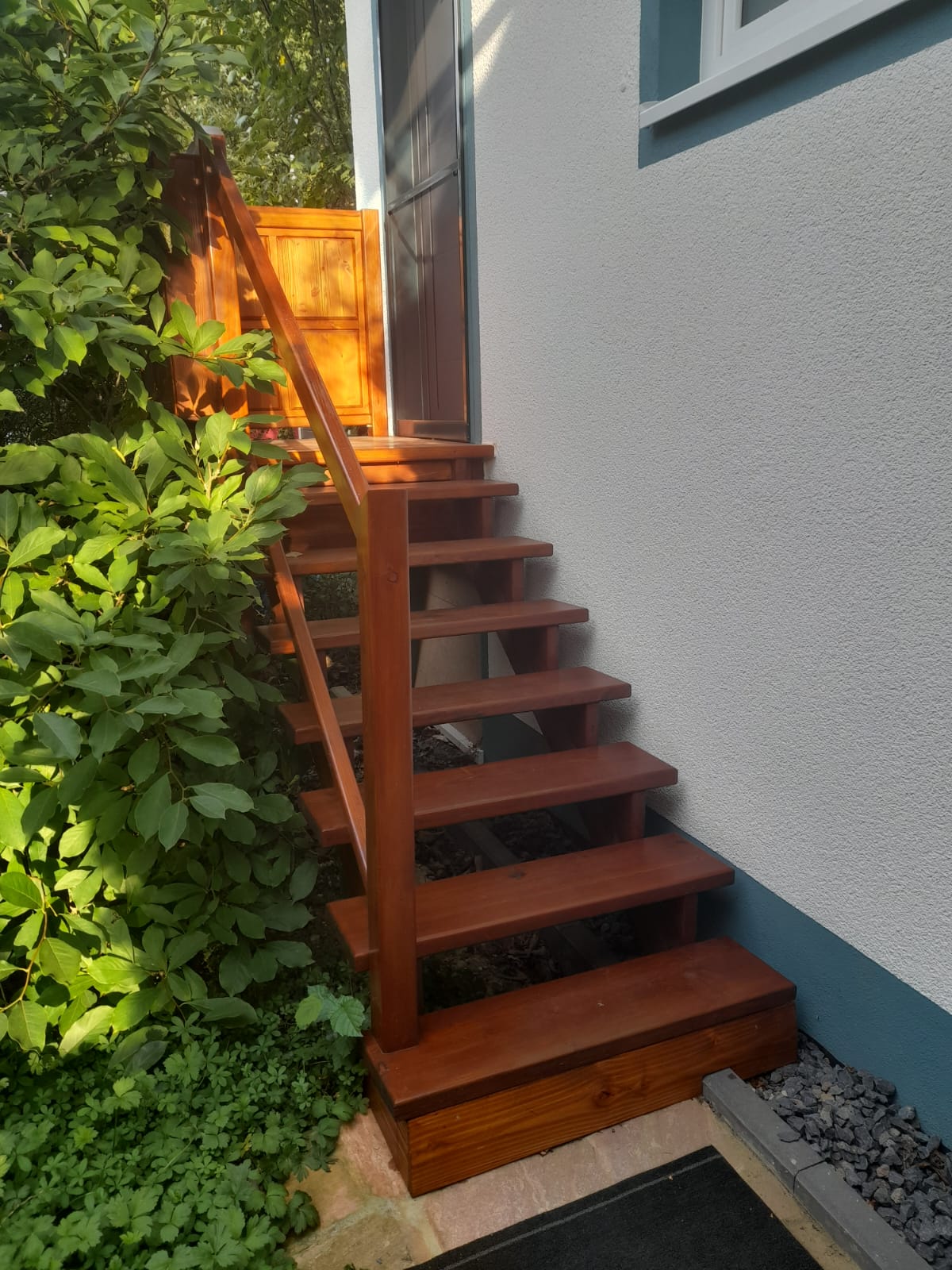 Die Treppe zum Yoga-Studio wurde komplett aus Altholz gefertigt, welches beim Abriss der alten Garage angefallen war.